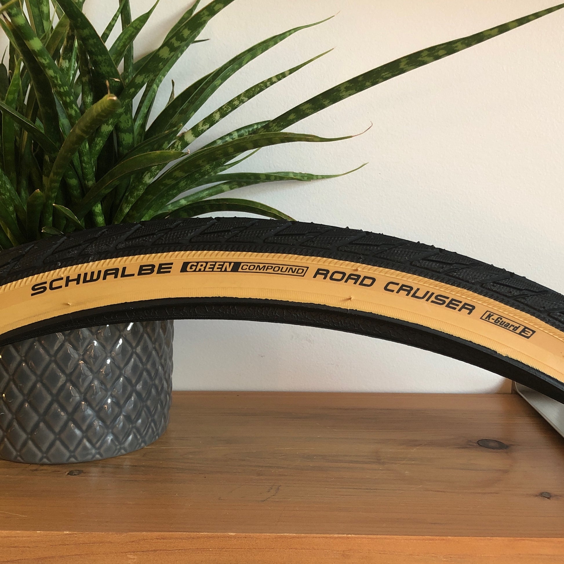 630-Schwalbe (HS484) 27 x 1 1/4 (28/32-630) Road Cruiser Gum Wall Tire with K-Guard (with Green Compound)