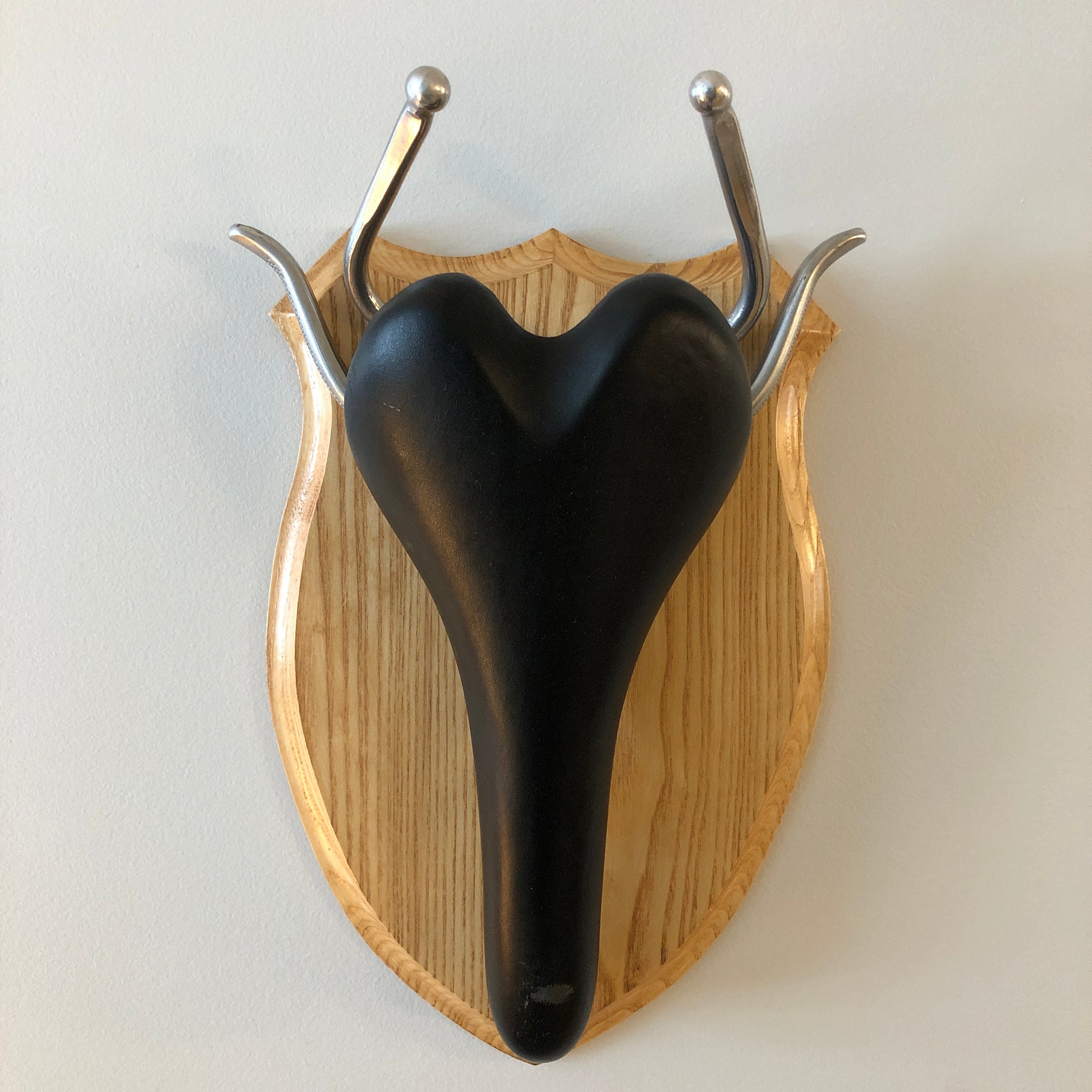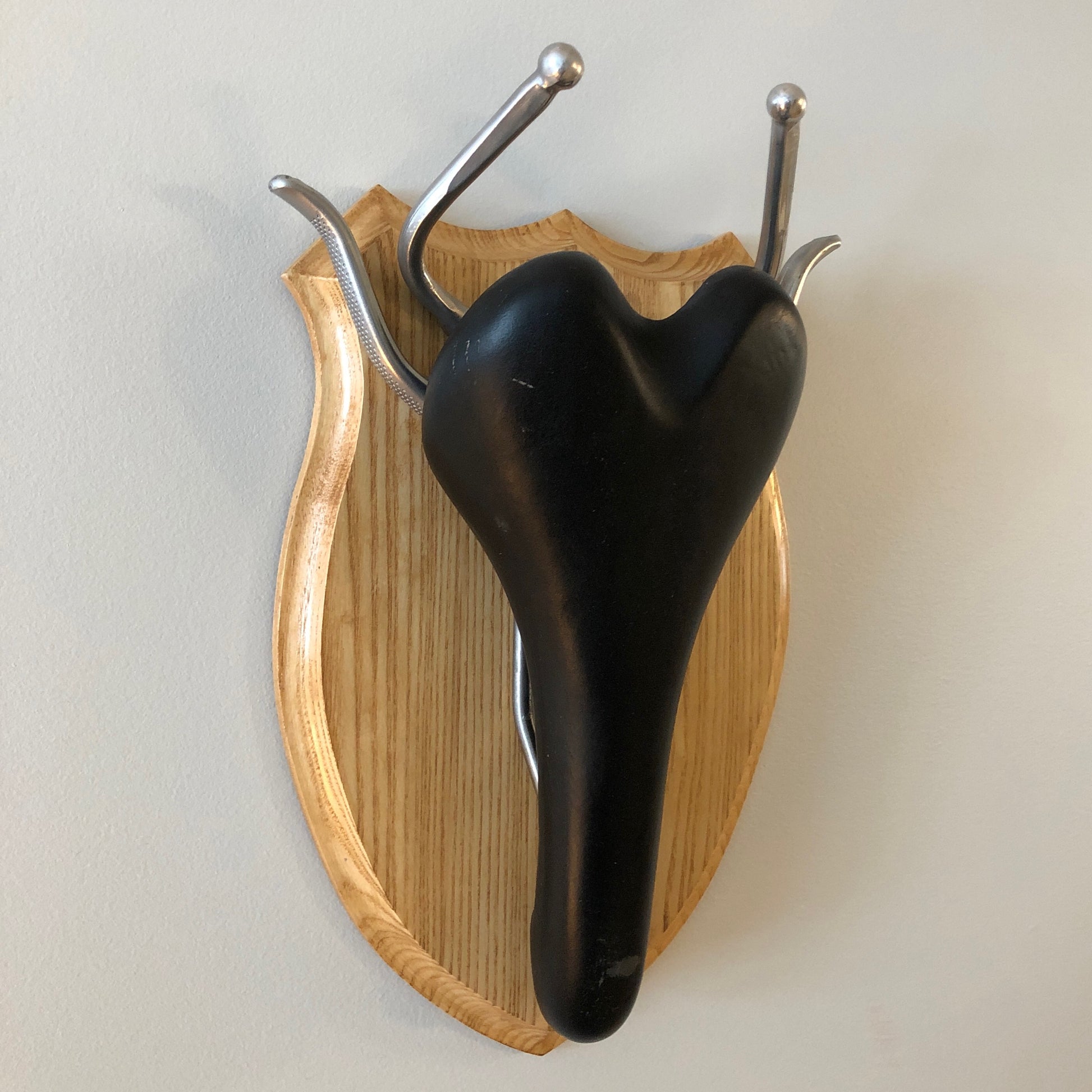 - made from up-cycled bicycle saddle and two vintage 80's "ten speed" brake and safety/suicide levers;