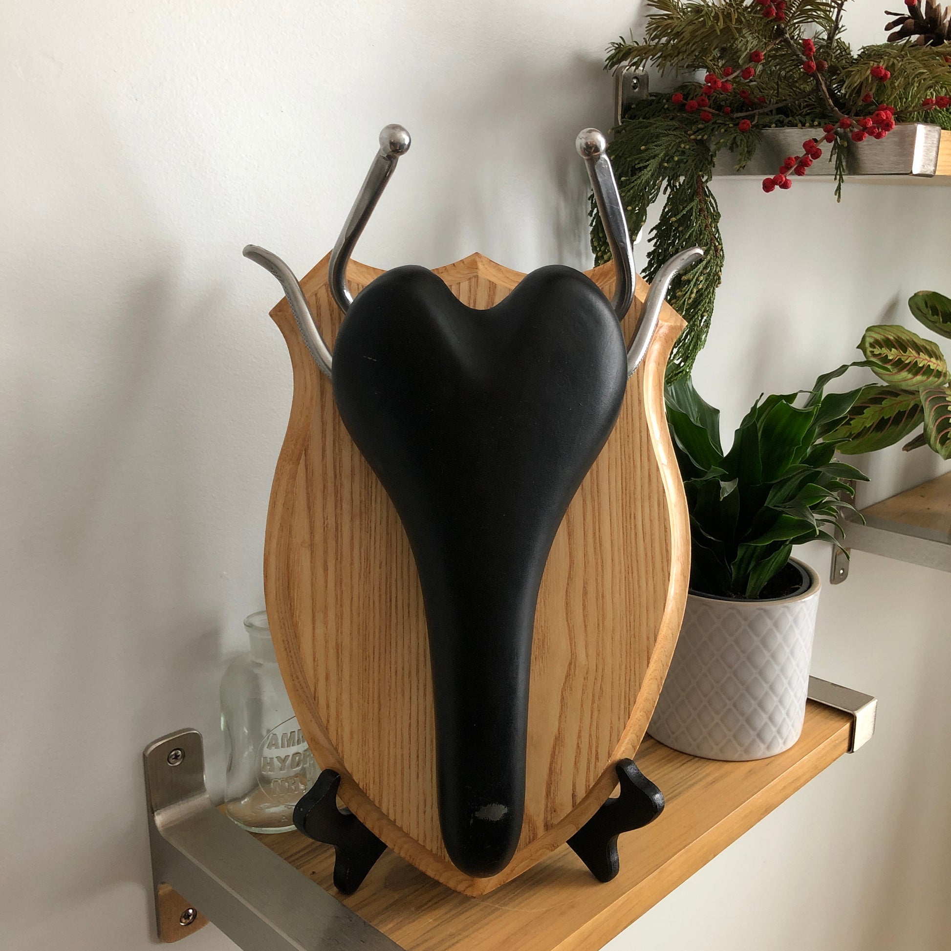 Note to Buyer: Bicycle taxidermy is created from used bicycle parts. Each piece is different. Buyers should expect some small chips, scratches, tears and/or rust. Any significant damage to the parts will be noted in the description. Pictures are reflective of the actual condition.