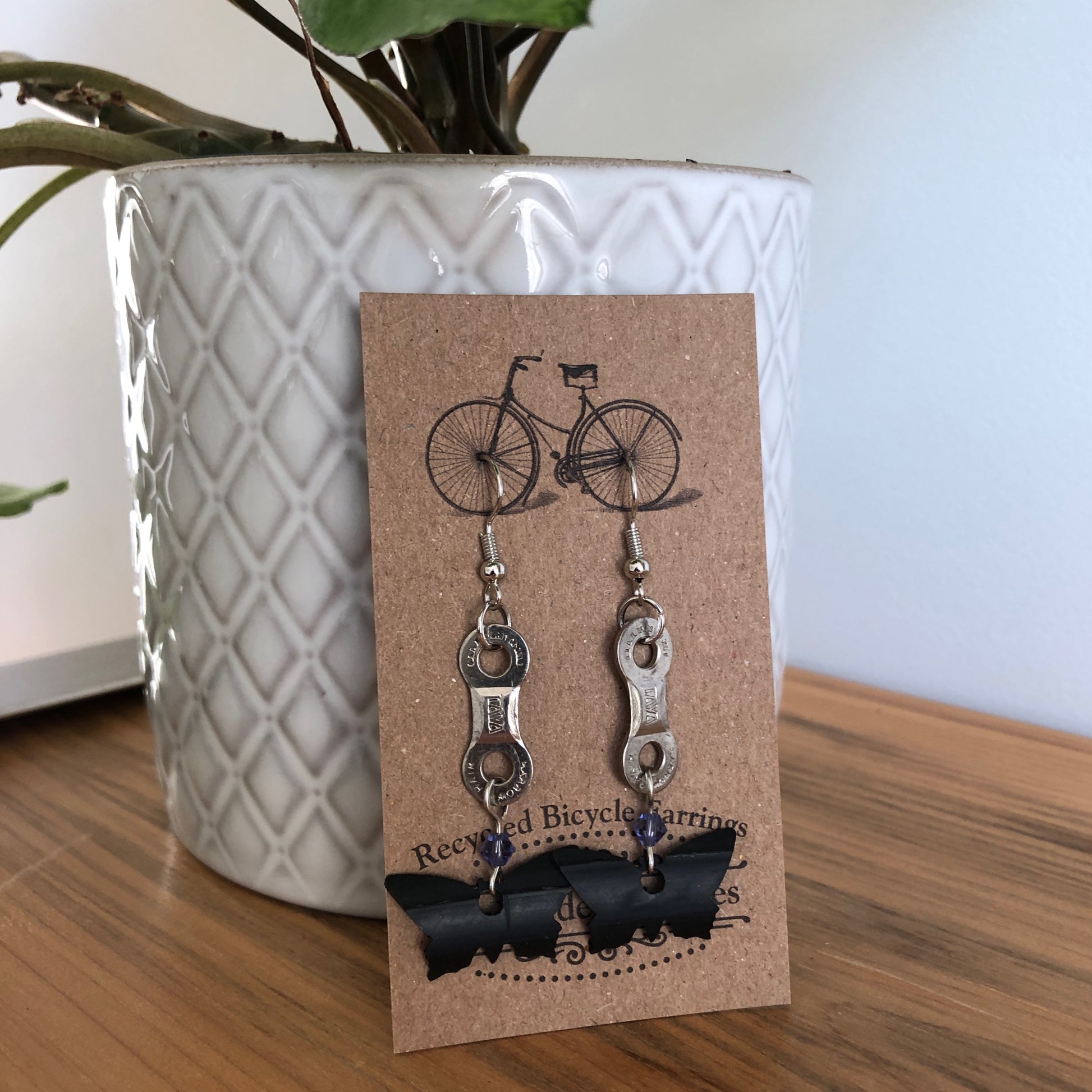 As these are hand made from upcycled bicycle parts, each pair will vary sightly. (e.g the brand of bicycle chain may vary, slight 2-5mm variation in length of a pair, etc.)