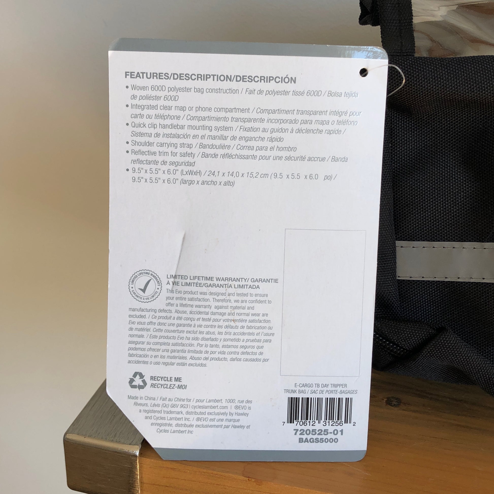 This is the perfect little bag to take with you on a day trip as the name suggests. It has many of the features of larger bags intended for multi-day rides. To start, it has a sturdy quick release feature that looks you bag securely in place while on the bike and detaches with a snap when you stop. It has two compartments, the main slightly larger one and a front one about a third of the size. The front one could be designated to carry a spare tube and a few other emergency essentials while the main one can hold snacks, wallet and other day trip essentials. It has a map pocket that opens at one end sewn to the front and covers the top of the back. It could a so carry your phone, but I would employ a binder clip at the open end if that was the case. A small mesh pocket on either side and a reflective strip across the front are additional features.