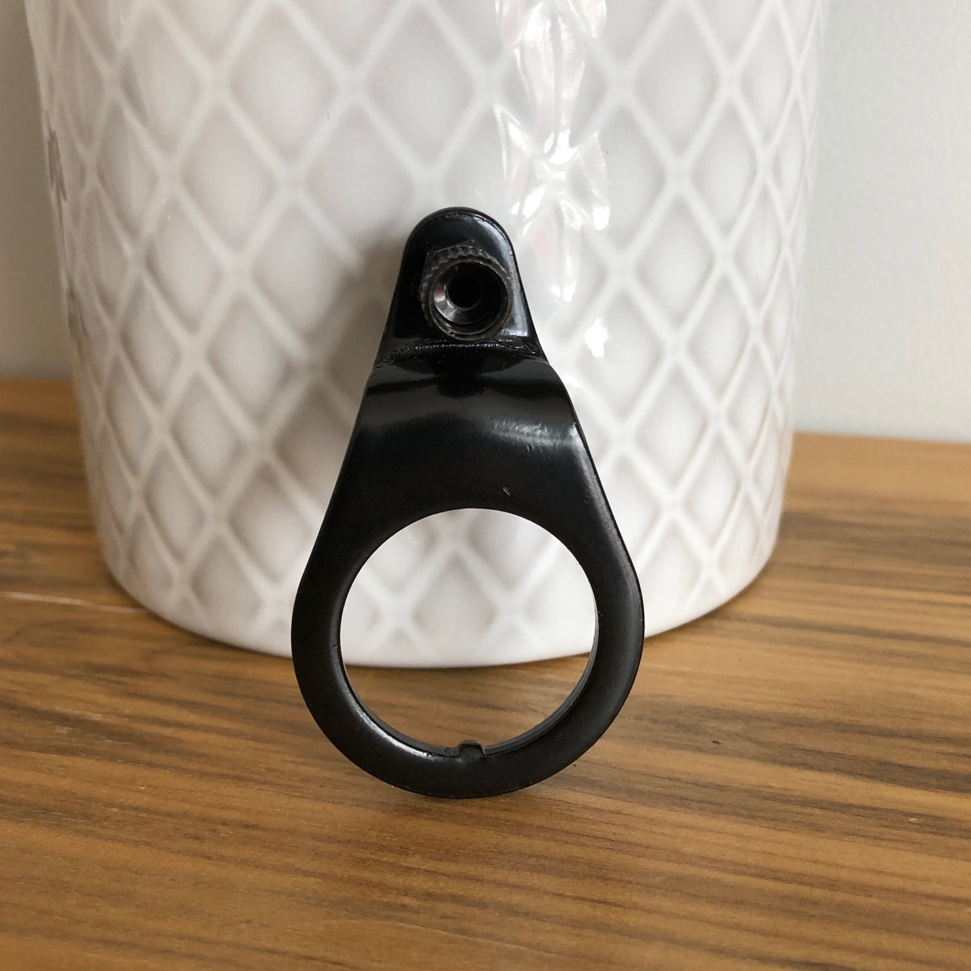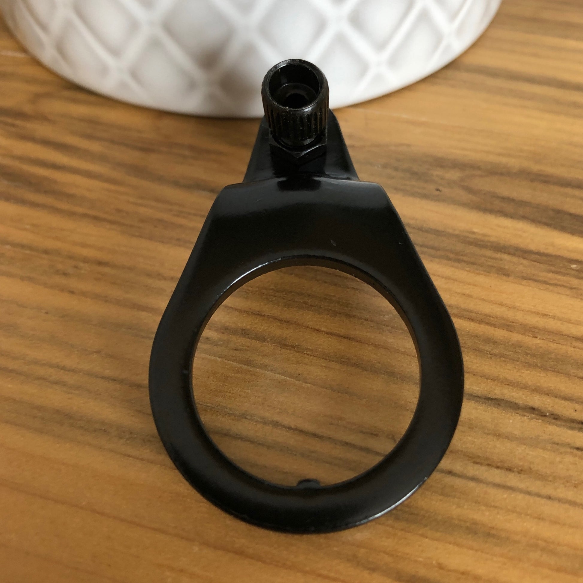This is you classic steel, 1" fork mounted cable stop for cantilever and centre-pull road brakes. It fits over a 1" fork and is held in place by the head set lock nut. It is notched to keep proper alignment. This model has an adjustable barrel.